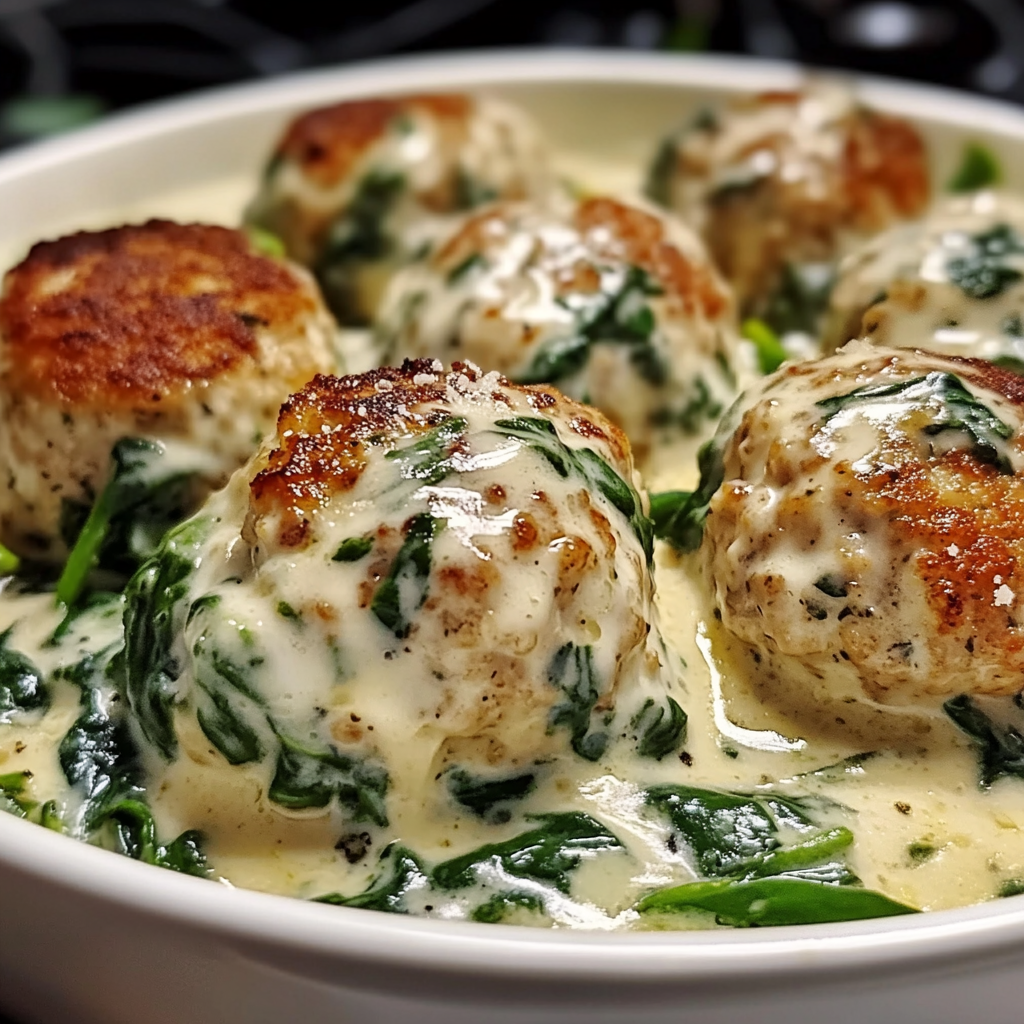 Tender chicken meatballs meet creamy spinach Alfredo sauce for a comforting and nutritious dish. Perfect for family dinners or special occasions, it’s wholesome indulgence at its finest.