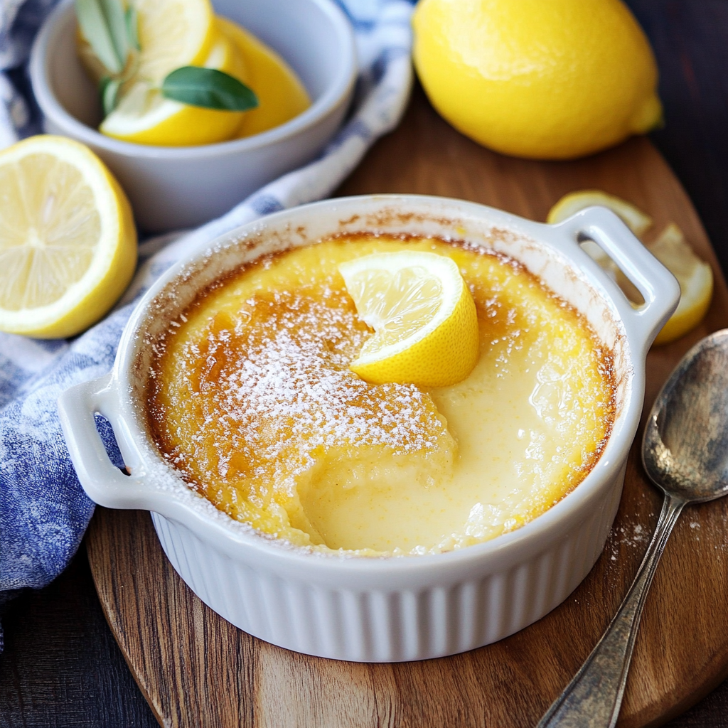 Baked Lemon Pudding is a refreshing, light dessert that perfectly balances zesty lemon flavor with a fluffy texture. Ideal for any occasion, this pudding combines the brightness of fresh lemon juice with the creamy richness of eggs and milk. It’s simple to prepare and serves beautifully at brunches, dinners, or as a sweet treat after a long day. The golden top and dusting of powdered sugar create an impressive presentation that will surely delight your guests. Enjoy this delightful dessert warm or chilled, paired with fresh berries or a dollop of whipped cream for an enhanced experience.