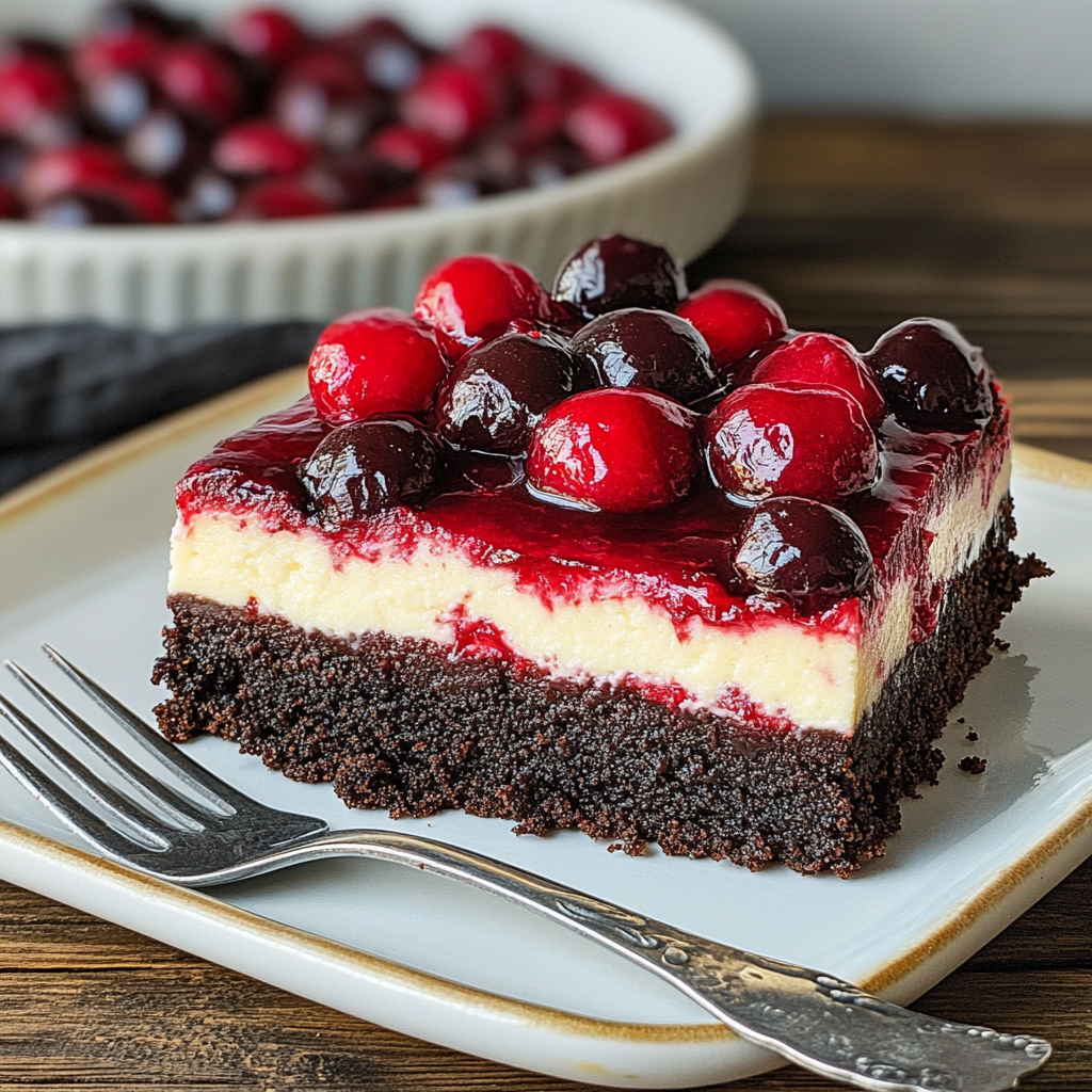 These bars are a delightful blend of chocolate cookie crust, creamy cheesecake filling, and sweet cherry topping, inspired by traditional Black Forest desserts.