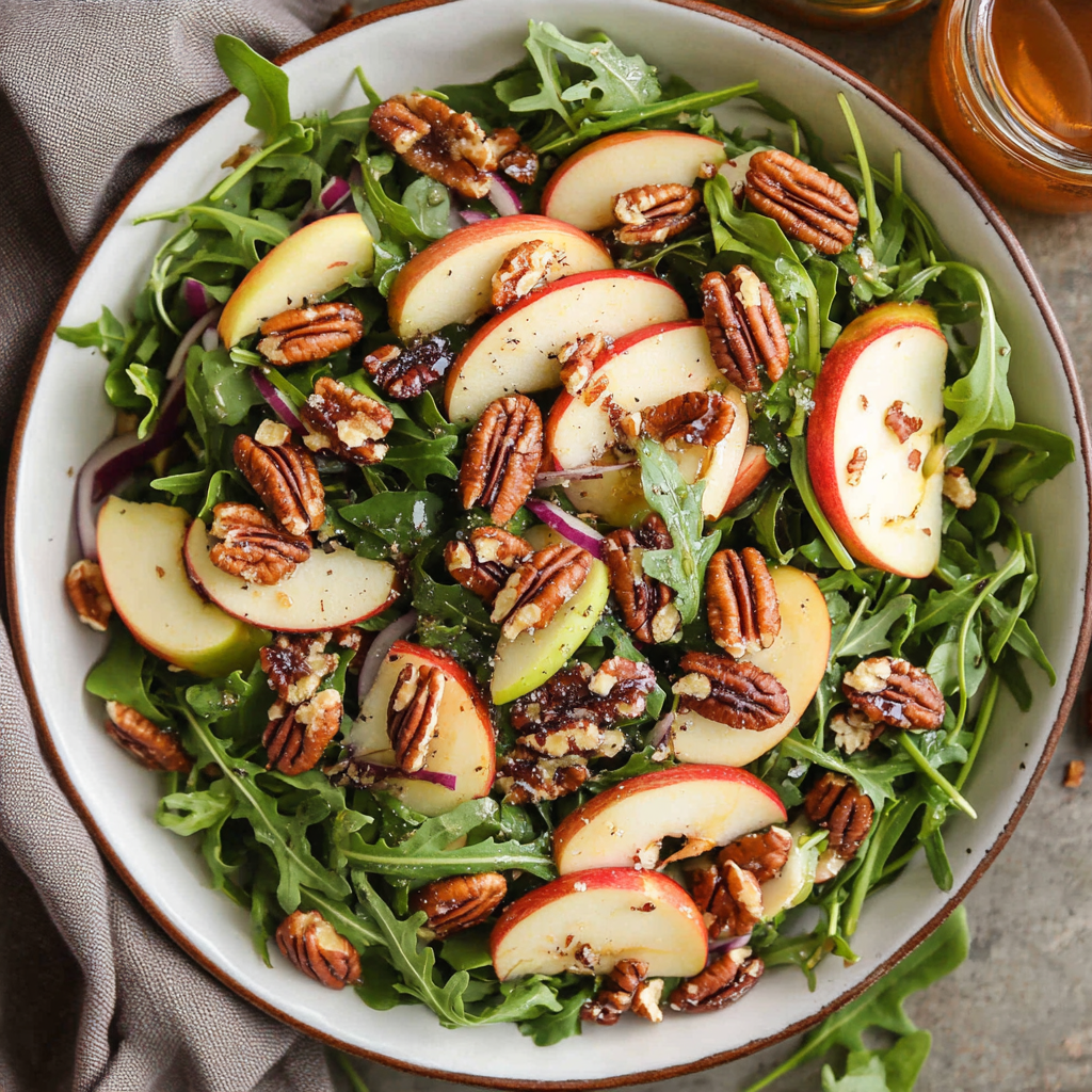 This Apple Arugula Salad With Maple Pecans is a vibrant, refreshing dish that brings together the best of fall flavors. Crunchy roasted pecans, sweet apples, and tangy balsamic dressing create …