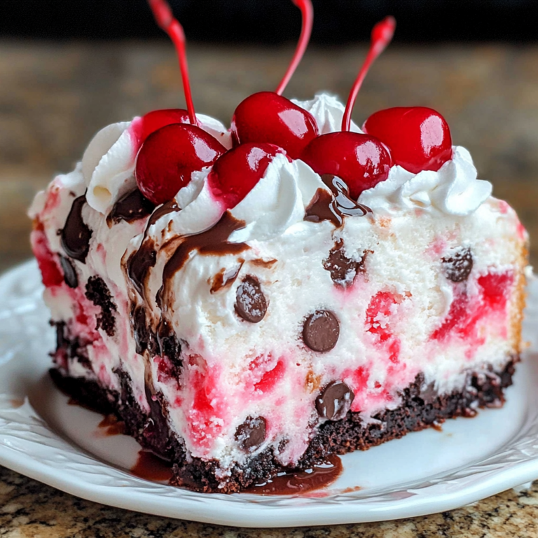 Indulge in the delightful Cherry Chocolate Chip Poke Cake, a dessert that harmoniously blends the sweet and tart notes of cherries with rich chocolate chips. This crowd-pleaser is perfect for any gathering, whether it’s a birthday party, potluck, or simply a sweet treat at home. The cake is easy to prepare and features a moist texture, soaked in sweetened condensed milk and topped with whipped cream and drizzled hot fudge sauce. Customizable with your choice of toppings, this poke cake is sure to impress family and friends alike!