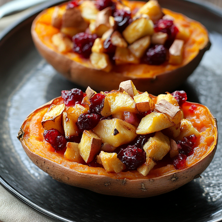 Cranberry Apple Twice-Baked Sweet Potatoes Recipe is a delightful dish that marries the sweet, earthy flavors of sweet potatoes with the tartness of cranberries and the crunch of apples. This recipe is perfect for holiday gatherings, potlucks, or simply as a cozy weeknight dinner. Not only does it provide a vibrant splash of color to your table, but it also offers a unique twist on traditional flavors, making it a standout side dish.
