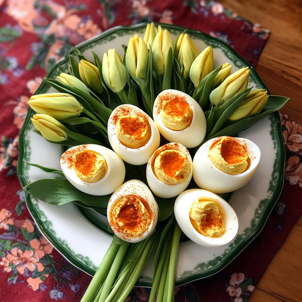 - Arrange on platter: Use fresh greens as 'leaves' and display your tulip-shaped deviled eggs atop them.