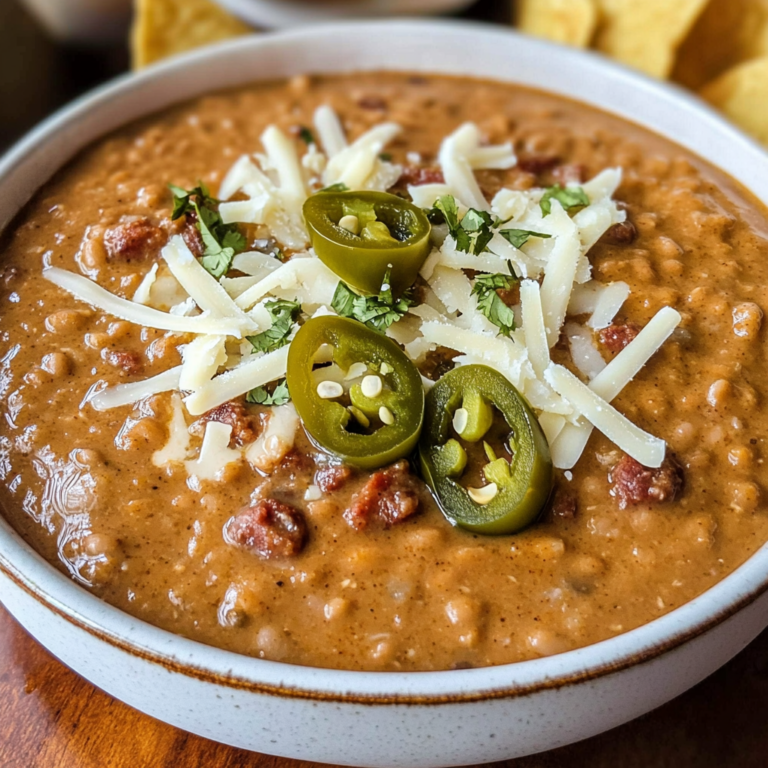 Frijoles Puercos is a bold and satisfying Mexican bean dip that brings a delightful kick of flavor to any gathering. This creamy concoction combines tender pinto beans, zesty chipotle peppers, and savory chicken sausage, creating a rich and hearty dip that’s perfect for parties, game days, or cozy evenings at home. Serve it with crisp tortilla chips or as a tasty side to your favorite dishes. With its customizable spice levels and quick preparation time, this dip is sure to become a crowd-pleaser that keeps everyone coming back for more!