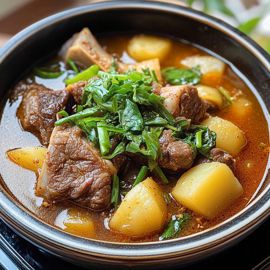 Gamjatang, a comforting Korean beef bone soup, is a heartwarming dish that brings warmth and flavor to any meal. Featuring tender beef neck bones simmered to perfection with hearty vegetables and aromatic spices, this recipe invites you to indulge in its rich, nourishing broth. Perfect for family gatherings or cozy dinners, Gamjatang is versatile enough to be enjoyed on its own or paired with rice. The unique blend of ingredients creates a satisfying experience that highlights the bold flavors of traditional Korean cuisine.