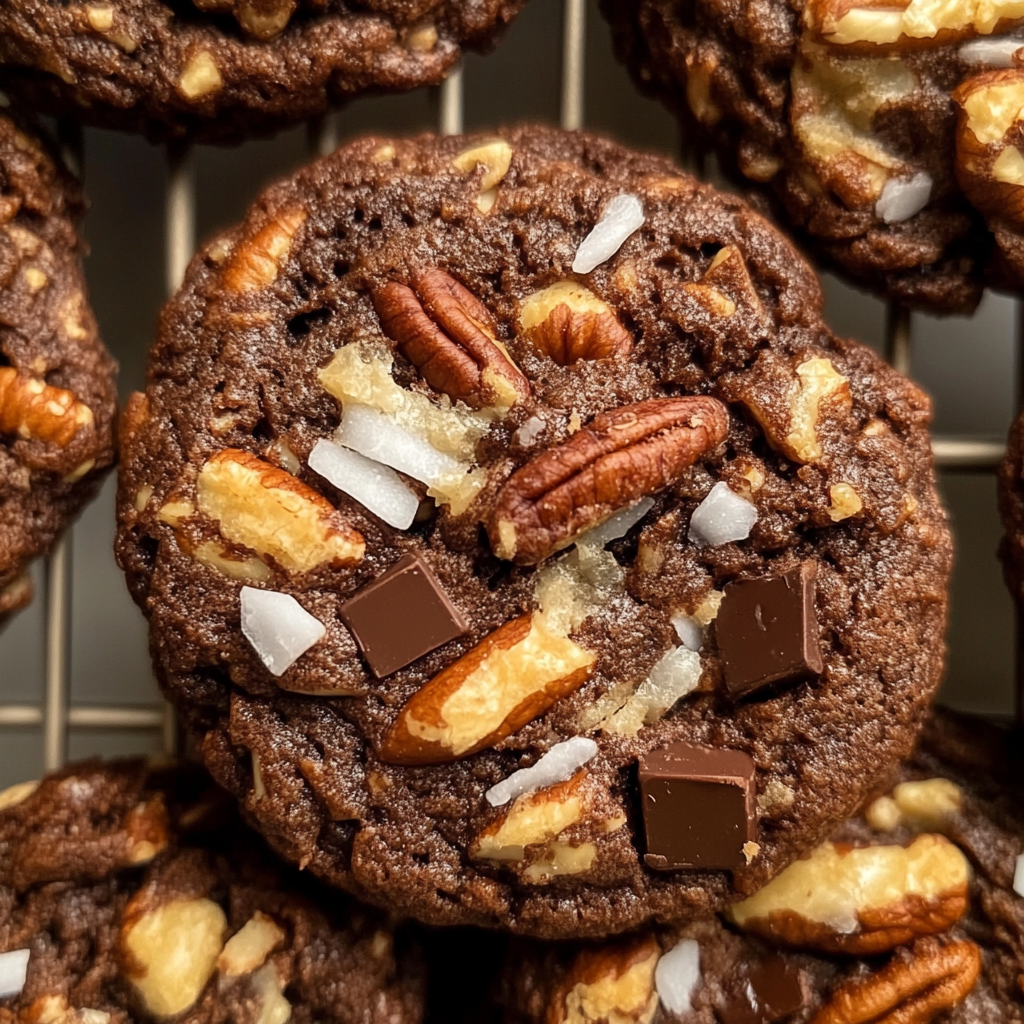 Rich chocolate cookies that are full of coconut, pecans, and melty chocolate pieces, these German Chocolate Cookies bring all the flavor of traditional German chocolate cake without the hassle. Perfect for any occasion, from casual gatherings to festive celebrations, these cookies are sure to impress with their delightful texture and irresistible taste.