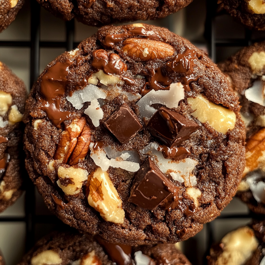 Rich chocolate cookies that are full of coconut, pecans, and melty chocolate pieces, these German Chocolate Cookies bring all the flavor of traditional German chocolate cake without the hassle. Perfect for any occasion, from casual gatherings to festive celebrations, these cookies are sure to impress with their delightful texture and irresistible taste.