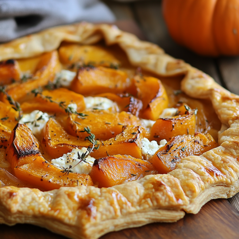 Embrace the flavors of fall with Golden Butternut Squash and Goat Cheese Galettes! This rustic tart beautifully combines the sweet, nutty essence of roasted butternut squash with the creamy tang of goat cheese, enhanced by caramelized onions and fresh thyme. Ideal for family gatherings or elegant dinners, this dish offers a delightful mix of textures and flavors that will impress everyone at your table.