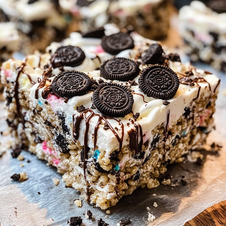 Indulge in the delightful world of Oreo Rice Krispies Treats, a sweet and crunchy dessert that brings joy to every occasion. Combining the satisfying crunch of Rice Krispies with creamy vegan marshmallows and irresistible crushed Oreo cookies, this no-bake treat is perfect for kids’ parties, family gatherings, or simply as a special snack at home. With layers of chocolate drizzle and more Oreos on top, each bite is an explosion of flavor that will leave everyone craving more. Easy to prepare in just 30 minutes, these treats are not only fun to make but also guarantee smiles all around!