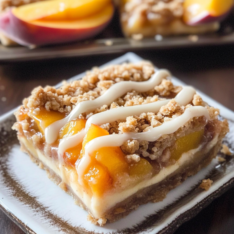 These Peach Pie Crumble Bars are a delightful fusion of two beloved desserts—peach pie and peach crumble. Perfect for any occasion, these bars feature a buttery shortbread base layered with juicy peaches and topped with a crunchy oatmeal crumble. The combination ensures every bite is bursting with flavor, making them an irresistible treat for gatherings or cozy nights in.