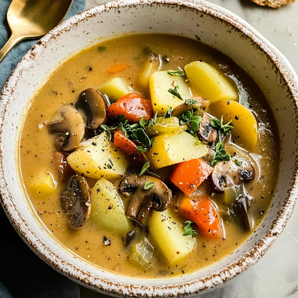 This Ratatouille Soup was inspired by the movie Ratatouille and gets its distinct flavors from a velvety blend of creamy potatoes, leeks, earthy mushrooms, and lots of aromatic herbs.