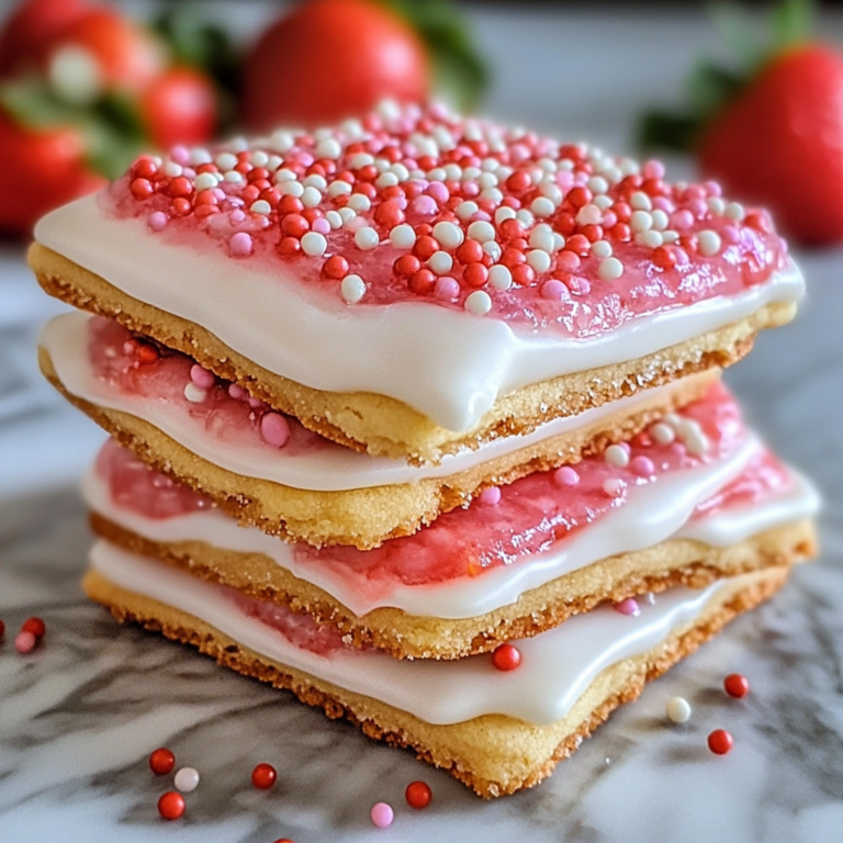 Indulge in the delightful flavors of Strawberry Pop Tart Sugar Cookies, a fun twist on a classic favorite! These soft, buttery cookies are filled with sweet strawberry jam and topped with colorful sprinkles, making them perfect for birthday parties, bake sales, or cozy family gatherings. Easy to make and customizable with various jams and toppings, they are a hit among both kids and adults. Get ready to create a batch of these nostalgic treats that will brighten any occasion!