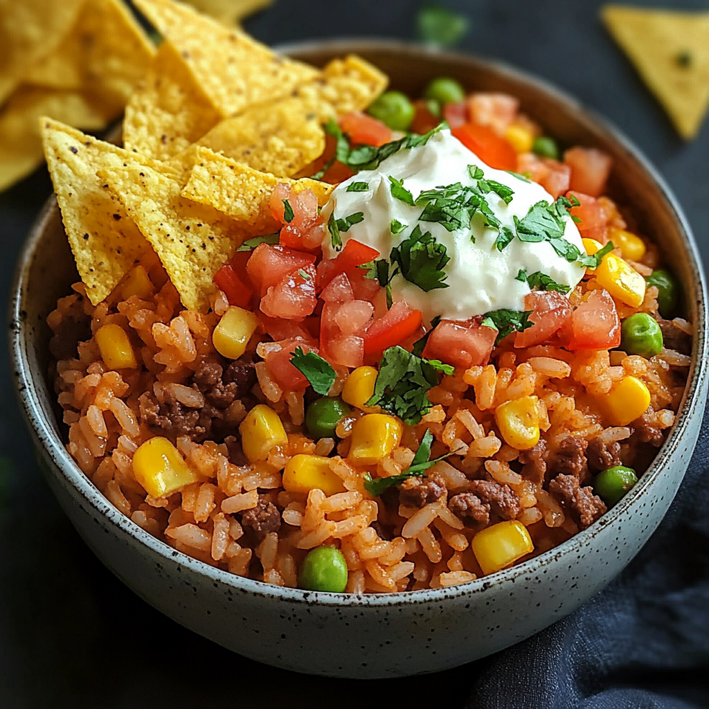 Elevate your weeknight dinner with this delicious Taco Rice Bowl with Doritos! This vibrant dish combines seasoned ground beef with fluffy rice and the irresistible crunch of nacho cheese Doritos, creating an exciting blend of flavors and textures. Perfect for busy evenings or casual gatherings, this meal is fully customizable—allowing you to add your favorite toppings and make it your own. With fresh ingredients and a quick cooking time, it’s a family-friendly option that is sure to become a staple on your dinner table. Enjoy each bite as you dig into this satisfying, one-bowl meal that’s both hearty and fun!