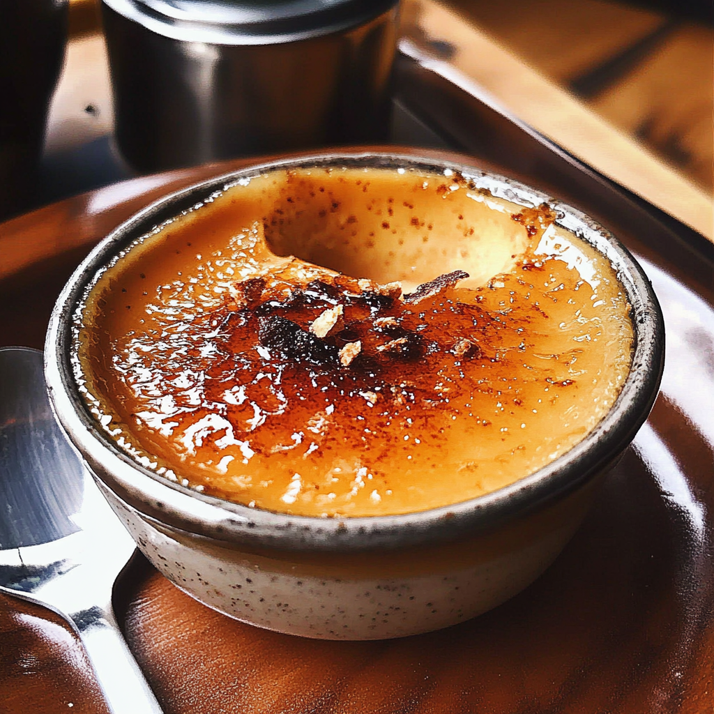 Thai Tea Creme Brulee is a fusion dessert combining traditional French custard with rich Thai tea flavors, topped with caramelized sugar.
