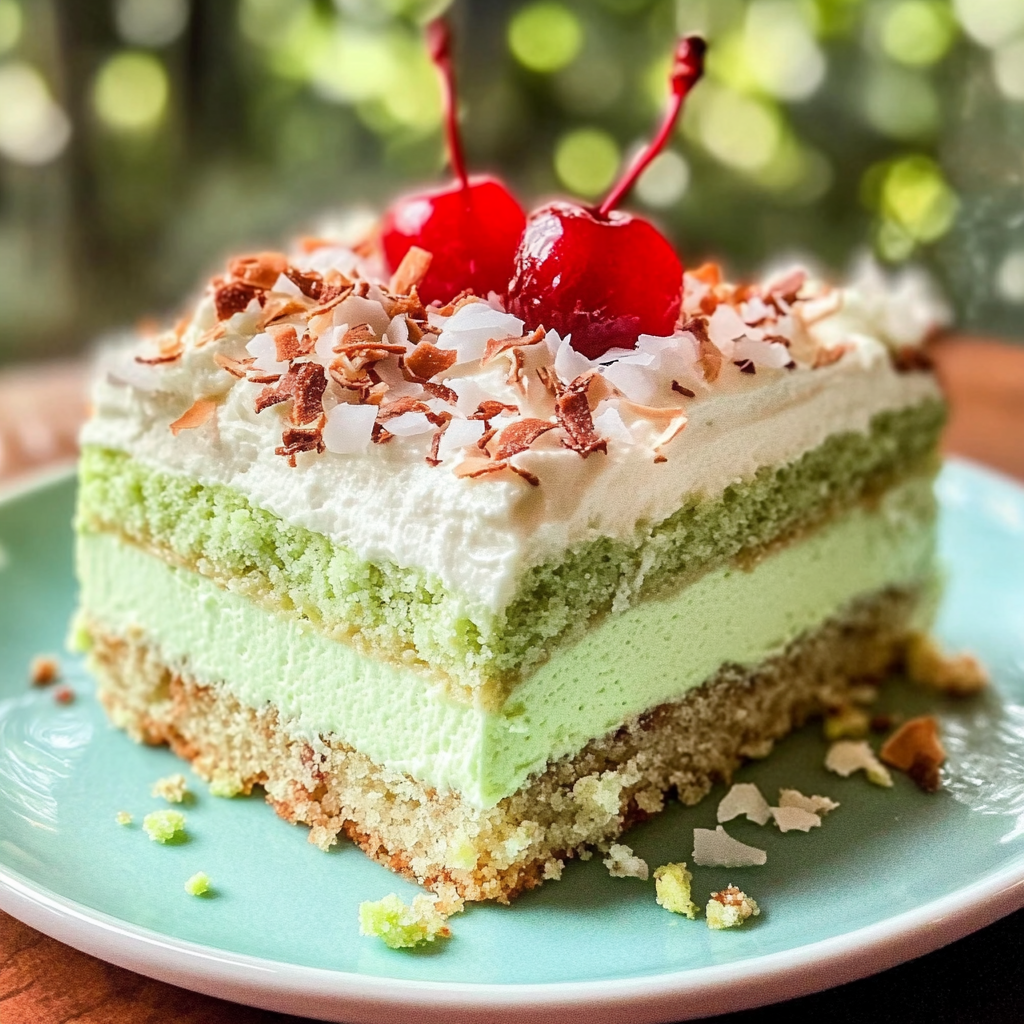 Watergate Cake is a delightful retro dessert that perfectly marries the flavors of pistachio and coconut. This easy-to-make cake is not just a treat for your taste buds; it’s also visually appealing with its vibrant green hue and charming garnishes. Ideal for parties, potlucks, or simply as a sweet indulgence at home, Watergate Cake stands out with its unique combination of textures and flavors.